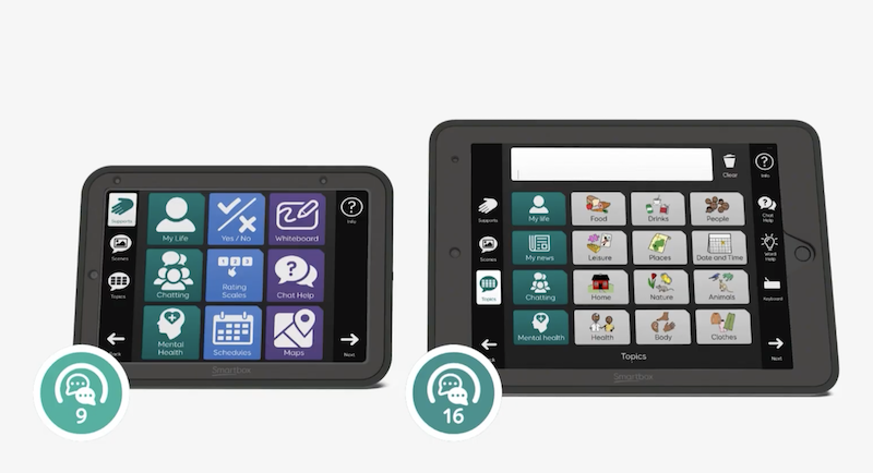 Both of them are designed primarily for touch access, and both of them can be used with a keycard, but they can also be used with alternative access, such as eye gaze or pointer.